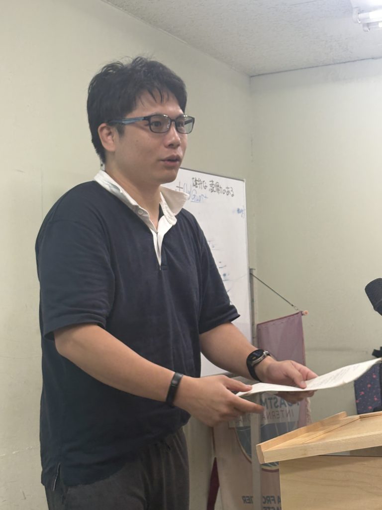 Mr A-san’s speech was the experience participating in political volunteer work. It was impressive.